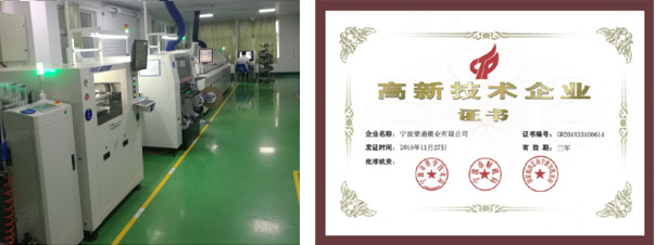 2018年:引进韩国自动贴片机(SMT),自主研发、生产电子锁的核心部件PCB。同年,被宁波市科技局授予“高新技术企业”,并且颁发证书。